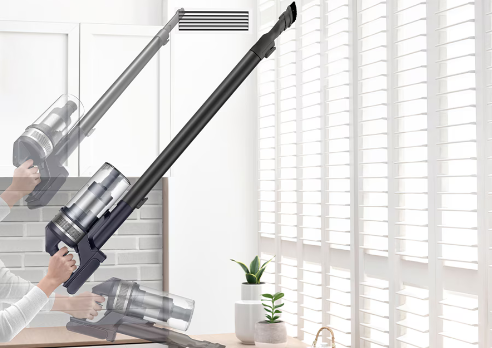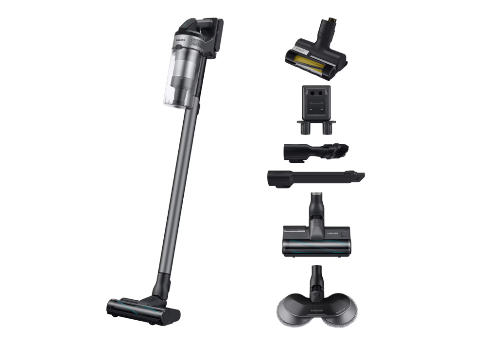 Акумуляторний миючий пилосос 2в1 (вертикальний + ручний) Samsung Jet 75 VS20B75ADR5 - бездротовий пилосос з високою продуктивністю і довговічною батареєю для вологого та сухого прибирання. Висока ефективність, завдяки цифровому інверторному двигуну з потужність всмоктування до 200 Вт та фільтру Jet Cyclone з багатоциклонною структурою і багатошаровою системою фільтрації.