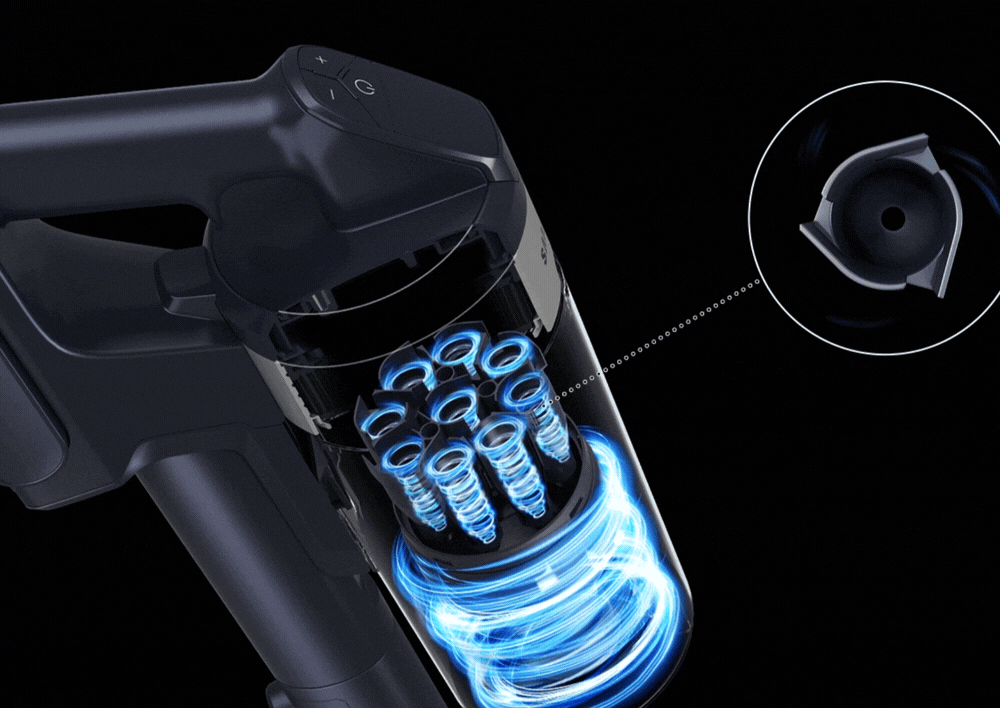 Висока продуктивність та довговічна змінна батарея із часом роботи до 60 хвилин та 99.9% фільтрації дрібного пилу, алергенів та пилових кліщів. РК-дисплей з підтримкою різних мов допомагає контролювати рівень заряду батареї, повідомляє про необхідність очищення фільтра, а також дозволяє обрати потужність залежно від потреб. Ви можете з першого погляду побачити рівень всмоктування та залишковий час роботи акумулятора. Дисплей сповіщає вас про проблеми та пропонує рішення.