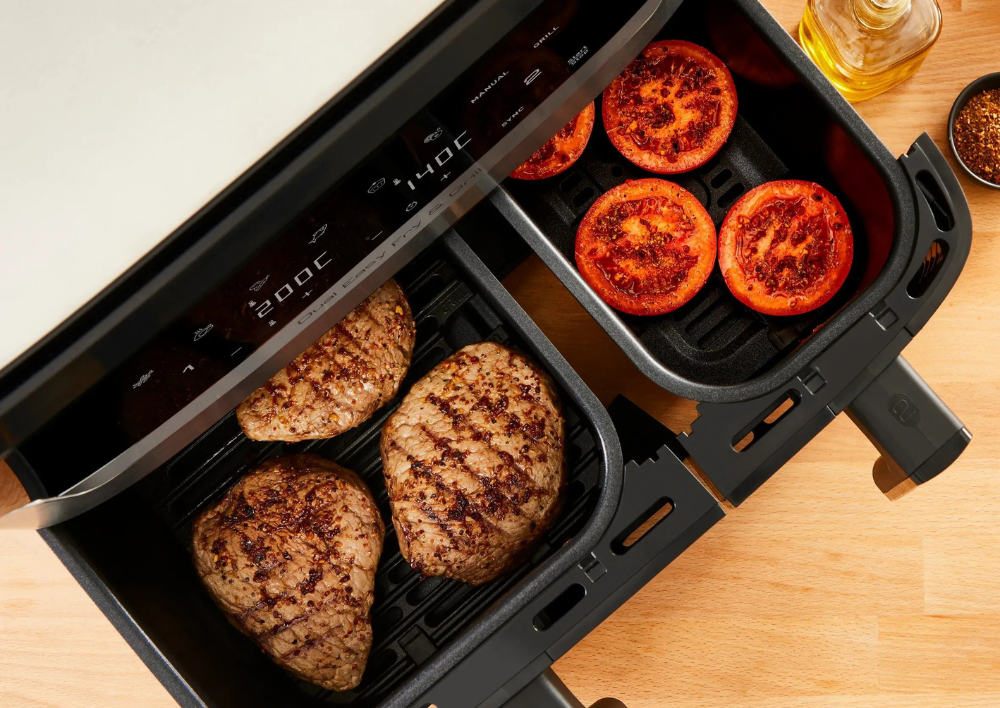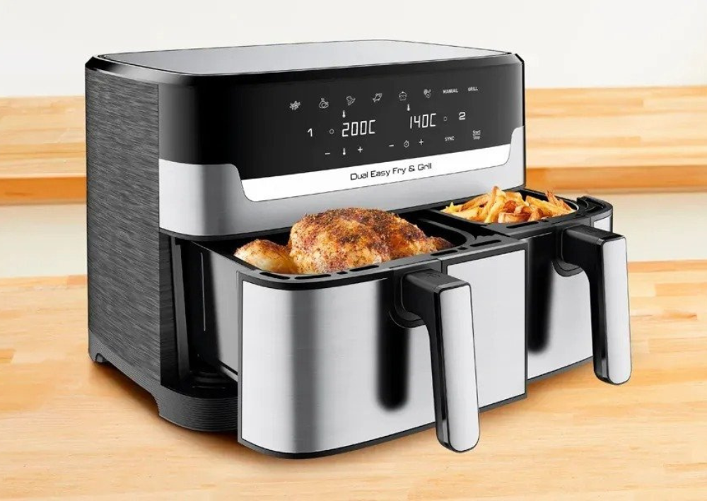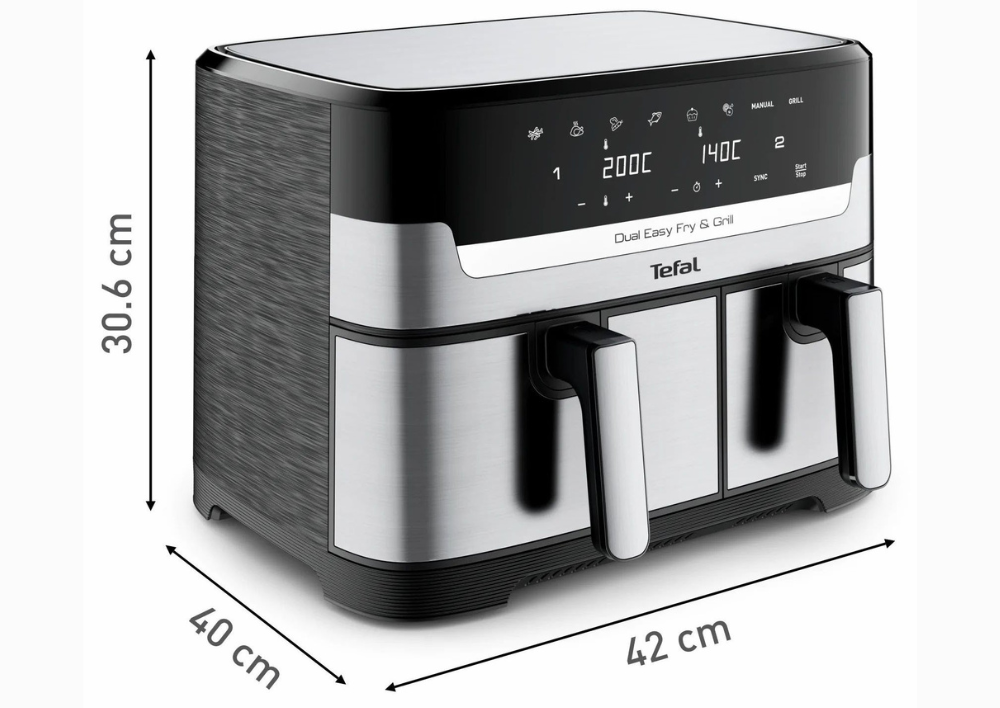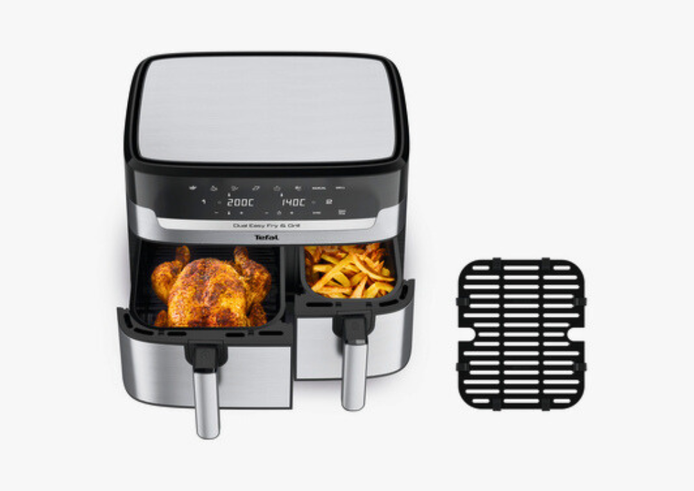 Швидша й енергоефективніша, ніж традиційна духова шафа, Dual Easy Fry & Grill має доступ до безкоштовного додатку. Мультипіч, яка одночасно смажить гарячим повятрям та готує на грилі завдяки двом чашам. Чаша розміром XXL може вмістити навіть цілу курку, тоді як обидві чаші вміщують щедрі порції картоплі фрі тощо.