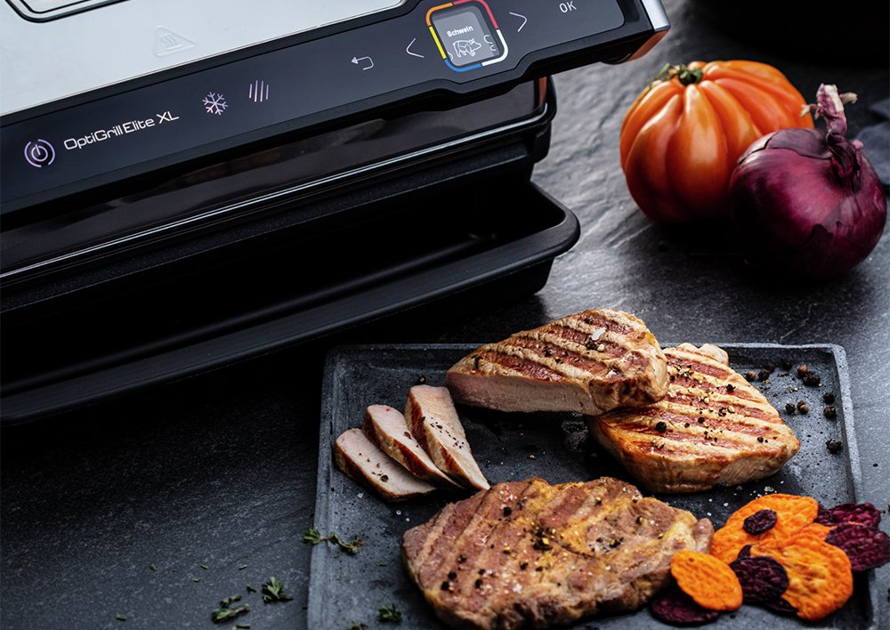 OptiGrill Elite XL GC760D30 швидко й легко приготує щодня сніданок, обід або вечерю на велику родину або компанію друзів: м'ясо, риба, морепродукти, овочі, бургери, бекон, сосиски, сендвічі тощо. 16 автоматичних програм, у тому числі 10 програм для м'яса та риби та 6 програм для овочів і сендвічів. Ви можете готувати свіжі або заморожені продукти, завдяки вбудованій функції розмороження. Не обмежуйте свою кулінарну фантазію, адже на додачу в комплекті є книга з 26 рецептами.